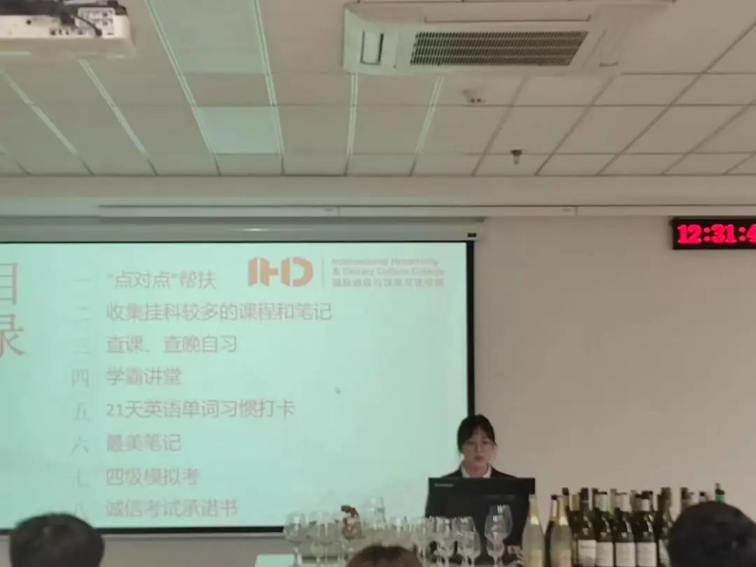 首先由主持人介紹此次學(xué)風(fēng)建設(shè)月的主要活動。本次學(xué)風(fēng)建設(shè)月共有八個活動:一是“點(diǎn)對點(diǎn)”幫扶,二是收集掛科較多的課程和筆記,三是查課、查晚自習(xí),四是學(xué)霸講堂,五是21天英語單詞習(xí)慣打卡,六是最美筆記,七是四級模擬考,八是誠信考試承諾書。
