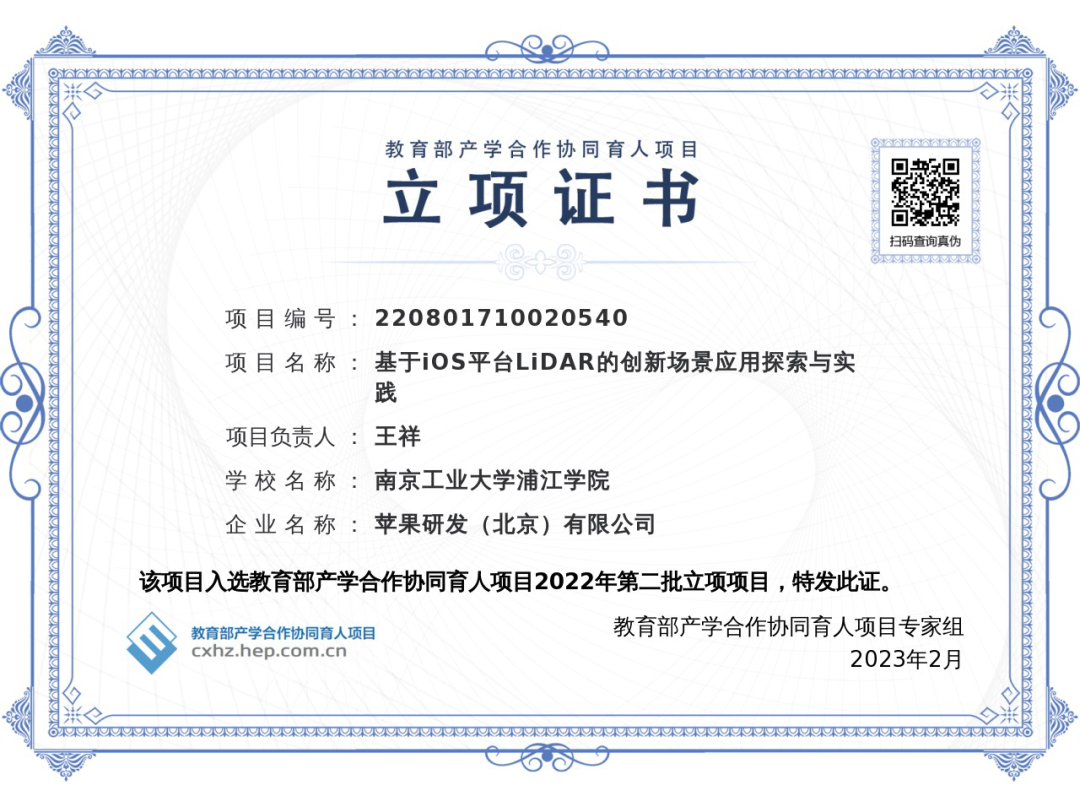 近日,教育部高等教育司發(fā)布了《關(guān)于公布2022年第二批產(chǎn)學(xué)合作協(xié)同育人項(xiàng)目立項(xiàng)名單的通知》(教高司函〔2023〕1號(hào)),南京工業(yè)大學(xué)浦江學(xué)院共獲批3項(xiàng)教育部2022年第二批產(chǎn)學(xué)合作協(xié)同育人項(xiàng)目。我院王祥老師主持的《基于 IOS 平臺(tái) LiDAR的創(chuàng)新場(chǎng)景應(yīng)用探索與實(shí)踐》獲得立項(xiàng),藝術(shù)學(xué)院產(chǎn)學(xué)合作協(xié)同育人實(shí)現(xiàn)新突破。