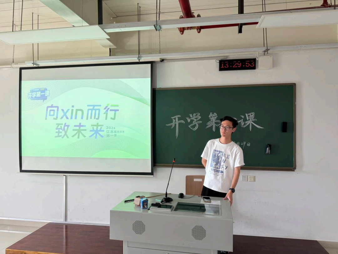為深入學(xué)習(xí)貫徹黨的二十屆三中全會和全國教育大會精神,更好用習(xí)近平新時代中國特色社會主義思想鑄魂育人、啟智潤心,激勵全省大學(xué)生立報國強國大志向、做挺膺擔(dān)當(dāng)奮斗者,學(xué)校組織各個二級學(xué)院于9月30日下午開展此次以“向xin而行致未來”為主題的2024年江蘇高校“開學(xué)第一課”觀看大會。