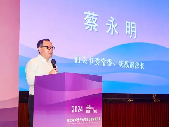 會(huì)議于下午1點(diǎn)50分正式開始,與會(huì)者共同觀看了2024“風(fēng)韻南粵”短視頻大賽特等獎(jiǎng)作品——“謝國(guó)民中華情”,該片以其深刻的情感和精湛的制作贏得了評(píng)委和觀眾的一致好評(píng)。汕頭市委常委、統(tǒng)戰(zhàn)部部長(zhǎng)蔡永明發(fā)表了熱情洋溢的歡迎辭,他在致辭中提到,黨的二十屆三中全會(huì)指出,“開放是中國(guó)式現(xiàn)代化的鮮明標(biāo)識(shí)”。潮汕族群從這里走出,在五洲四海譜寫出一段段輝煌與艱辛并存的奮斗故事。今天,這場(chǎng)高水平的學(xué)術(shù)報(bào)告會(huì)聚焦“開放”與“潮商”,既是對(duì)“兩大盛會(huì)”的預(yù)熱,又深度契合“兩大盛會(huì)”“合作共贏、共謀發(fā)展”的主題。期待大家在深入交流中碰撞出更多“理論+實(shí)踐”的火花。
