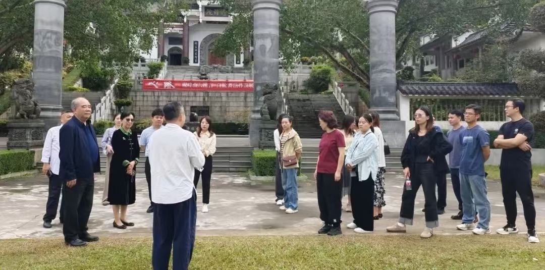 李琦老師為研究團隊介紹了中國國學泰斗、硯峰書院高級顧問饒宗頤先生對硯峰書院的高度評價與深切期許:"綜鞶帨于遙年"的含義、陰陽土的傳奇、“兩只鉎牛一只溜”的鄉(xiāng)土故事、五百米書法碑林中蘊藏著的五千年中華優(yōu)秀傳統(tǒng)文化。