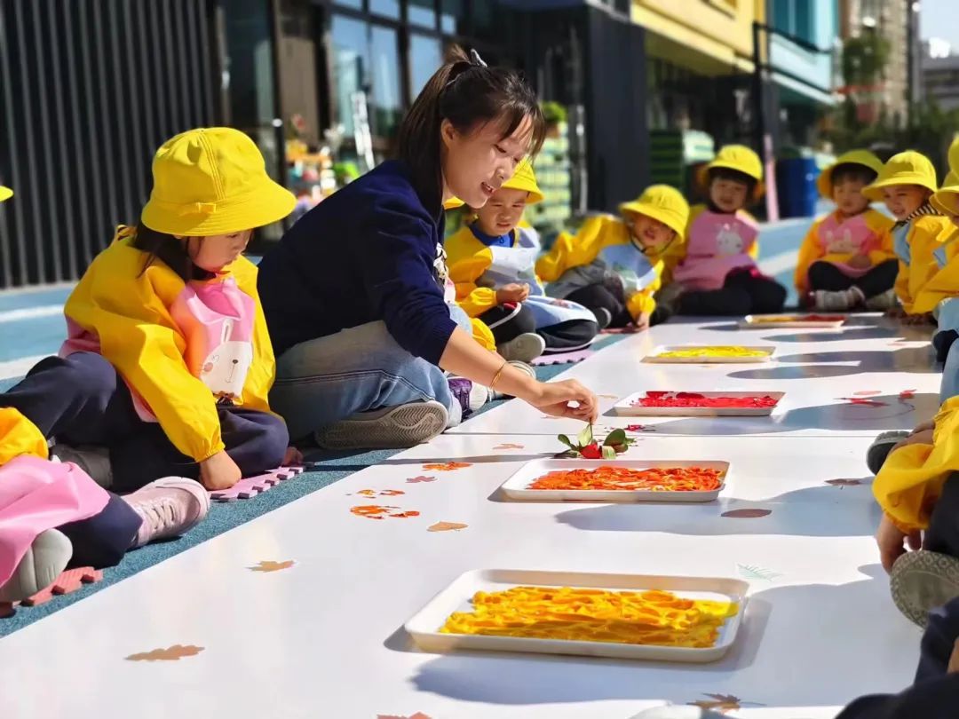 無錫市鈴蘭實驗幼兒園教師在教孩子做手工。王辰予 攝