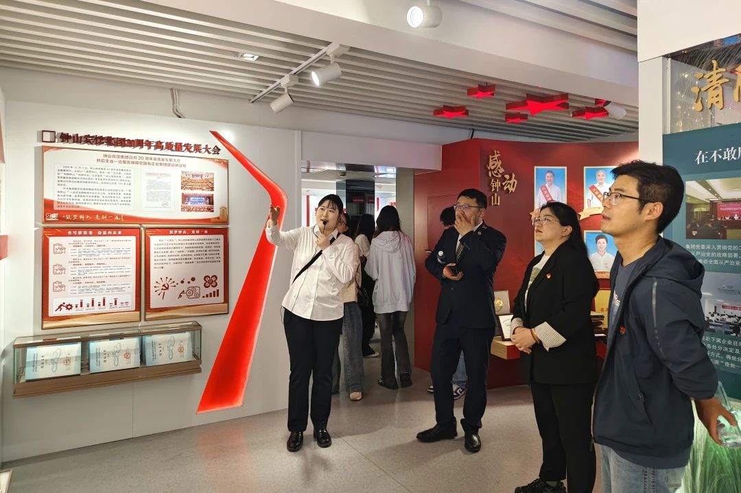 隨后,師生們跟隨講解員來到鐘山“紅嶺”黨建中心,沿著“黨史長河”時(shí)間軸,重溫了黨的“經(jīng)典論述”、各時(shí)期的“偉大精神”“時(shí)代先鋒典型”等內(nèi)容,進(jìn)一步了解中國共產(chǎn)黨排除千難萬險(xiǎn),帶領(lǐng)中國逐步走向繁榮富強(qiáng)的偉大歷程。“印象鐘山”、“旗幟鐘山”、“清風(fēng)鐘山”、“影像鐘山”、“感動(dòng)鐘山”等板塊展現(xiàn)了鐘山賓館集團(tuán)近百年的發(fā)展歷程,黨建與經(jīng)營發(fā)展的深度融合。培育了一批具有較強(qiáng)創(chuàng)新性、可推廣性的好做法、好經(jīng)驗(yàn),形成了以“紅嶺”鐘山為核心的品牌矩陣和黨員先鋒榜。之后,師生們還一同參觀了勵(lì)志社大禮堂舊址、鐘山賓館(江蘇省會(huì)議中心)大禮堂等地