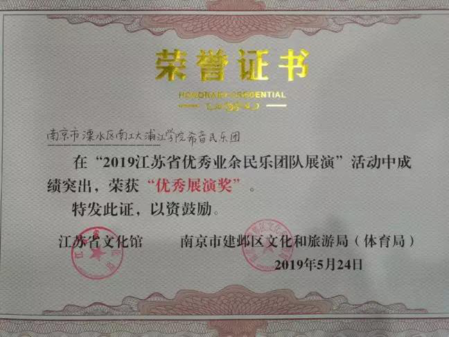 我校在2019江蘇省優(yōu)秀業(yè)余民樂團隊展演活動中榮獲金獎